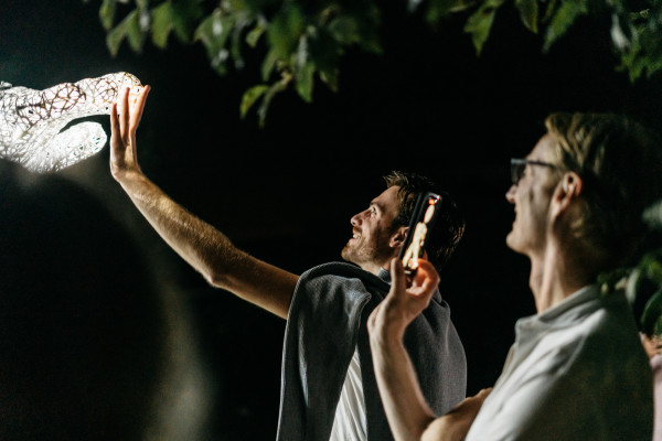 Eine Lichtgestalt, deren Bedeutung erst im Zusammenspiel der Menschen entsteht und einen Freiraum für die eigene Fantasie und Projektionen öffnet. Ein musikalisches, interaktives und faszinierendes Erlebnis, bei dem Puppenspieler in Harmonie mit der Live-Musik einen gemeinsamen Atem finden.